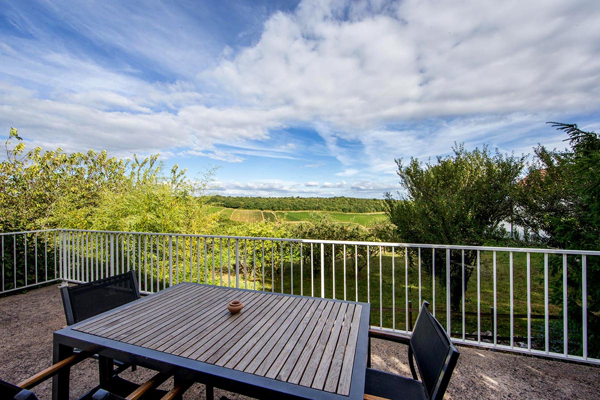 Nestling in lush greenery this beautiful detached house dating from 1886 offers 150m² of living area. It is ideal for a couple, on their own or with up to 3 children, looking for new vistas, rest and comfort. Its two treed gardens, one facing east and the other west, provide the calm you seek and stunning views over the vineyards and the Hautes Côtes de Beaune. The living room patio will suffuse your meals with sunlight, while the patio off the downstairs bedroom will watch over your siestas!