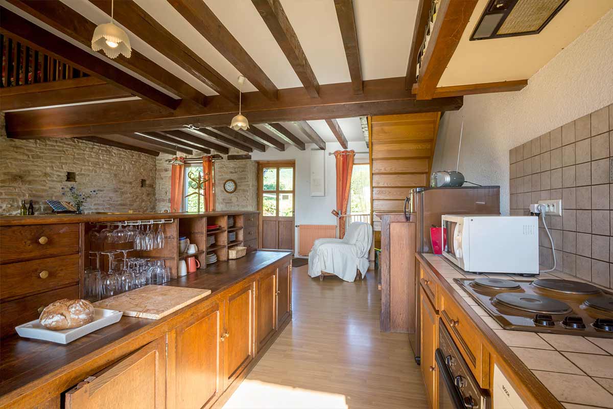 The fully fitted and equipped kitchen has everything you need: fridge, freezer, oven, microwave oven, dishwasher, coffee-maker, kettle, toaster, etc. There is also an extensive range of crockery, dishes and pans. The large oak table is a perfect setting for friendly family meals, the sofa a haven for reading and naps. The typical Burgundy fireplace will keep you warm if the weather turns cold. While the magnificent view from the patio will take your breath away!