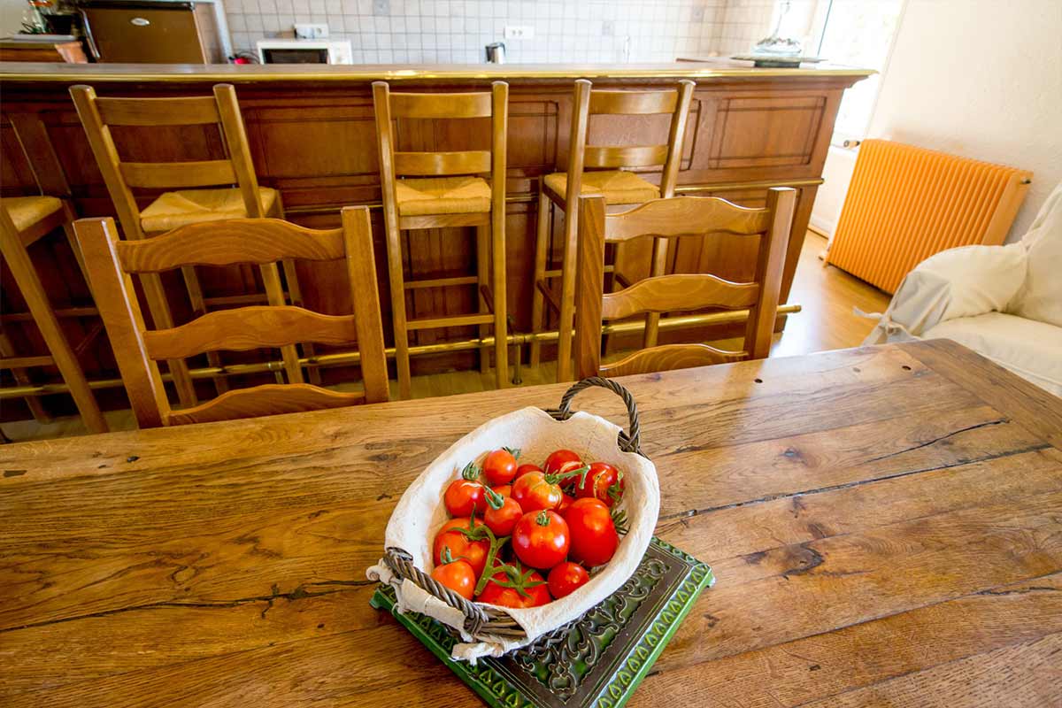 This space consists of an American-style kitchen with an ancient wooden bar, and a lounge/dining-room boasting a magnificent fireplace.